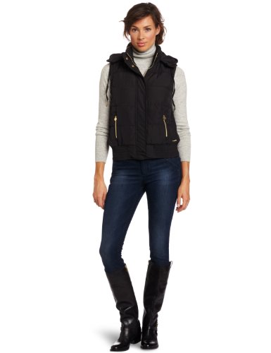 Warm, wind resistant, and super cute, are all rolled into one of our best body designs for puffer style vest, shaped hood is detachable, or can lay flat off the back, stand up collar and hidden placket, for extra protection and warmth, gold metallic details at zipper pockets, hood drawstrings, and calvin klein performance logo at lower hem, this will soon be one of your favorites