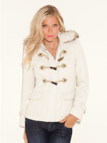 Update your cold-weather style with this wear-everywhere wool-blend coat. Its faux-fur lined hood and rustic-chic toggle closures elevate any look. ? Wool-blend coat. Fold-over collar. Long sleeves with button tabs. Removable faux-fur lined hood. ? Patch pockets with flaps at lower front. Vented back. ? Concealed front zipper. Horn-style toggle closures. Lined. ? 49% Polyester, 47% Wool, 4% Other Fibers. Lining: 100% Polyester. ? Dry clean Women > Jackets & Outerwear